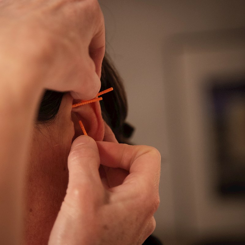 NADA er en simpel protokol som stimulerer fem akupunktur punkter i hvert øre med nåle. De skal side i 45 min. Metoden er non verbal, ikke terapeutisk, men recovery baseret. Punkterne påvirker nervesystemet og balancerer krop og sind – reetablerer den dybe vejrtrækning og den grundlæggende kontakt til kroppen. Stress og mylder tanker falder til ro og en forankring genetableres.